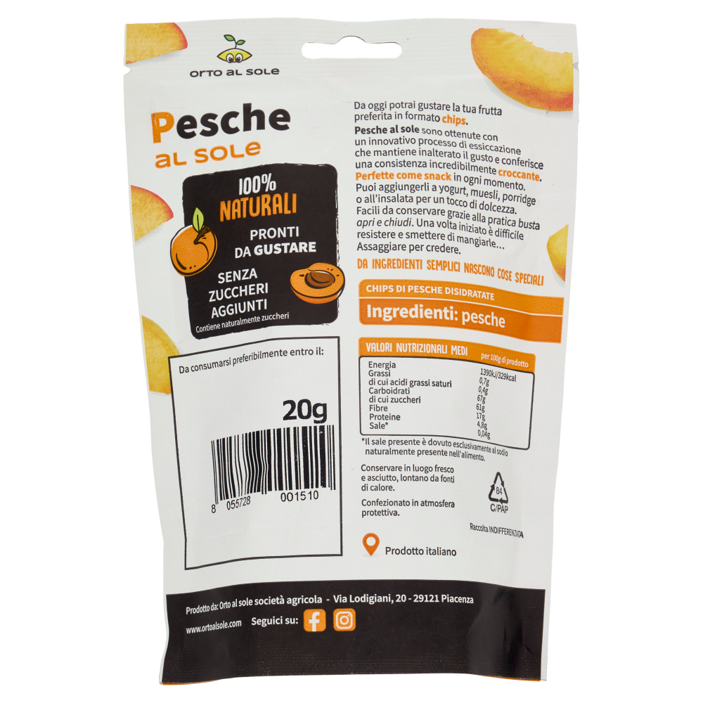 Orto al Sole Pesche al sole Chips di Pesche Croccanti 20 g