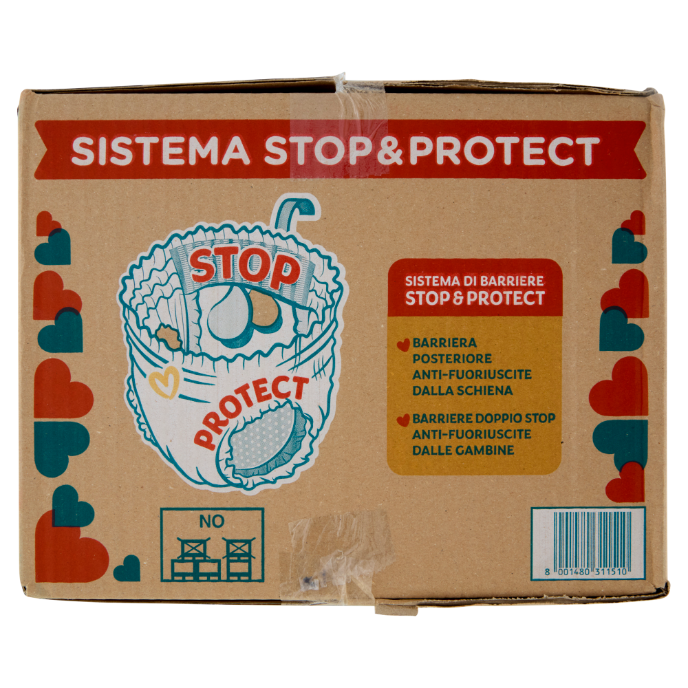 Sistema di barriere stop & protect - Barriera posteriore anti-fuoriuscite dalla schiena - Barriere doppio stop anti-fuoriuscite dalle gambine Qualità Pampers in cartoni 100% riciclati