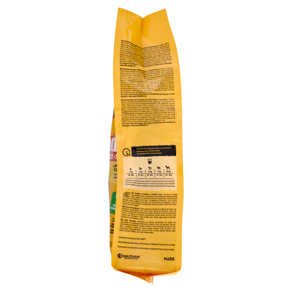 Con ingredienti naturali superfood Le carote sono una fonte naturale di vitamina A I piselli sono una fonte di fibre e minerali Con prebiotici & superfoods Igiene orale Mantenere i denti & le gengive del cane in salute è fondamentale per loro. Per questo le nostre crocchette hanno una consistenza appositamente progettata e uno speciale ingrediente attivo che aiuta a pulire i loro denti. Pelle & pelo in salute Con vitamina B e zinco che aiutano a nutrire la sua pelle e il suo pelo. Digestione ottimale I nostri prodotti contengono fibre naturali, prebiotici e proteine di alta qualità che favoriscono un apparato digerente sano. Favorisce le difese naturali Le nostre ricette contengono vitamina E, conosciuta per avere funzioni antiossidanti e aiutare a supportare le sue difese naturali. Sviluppato con la scienza Waltham www.waltham.com Provenienza responsabile I brand Pedigree lavora a stretto contatto con i coltivatori di grano per migliorare le pratiche agricole. - Senza olio di palma