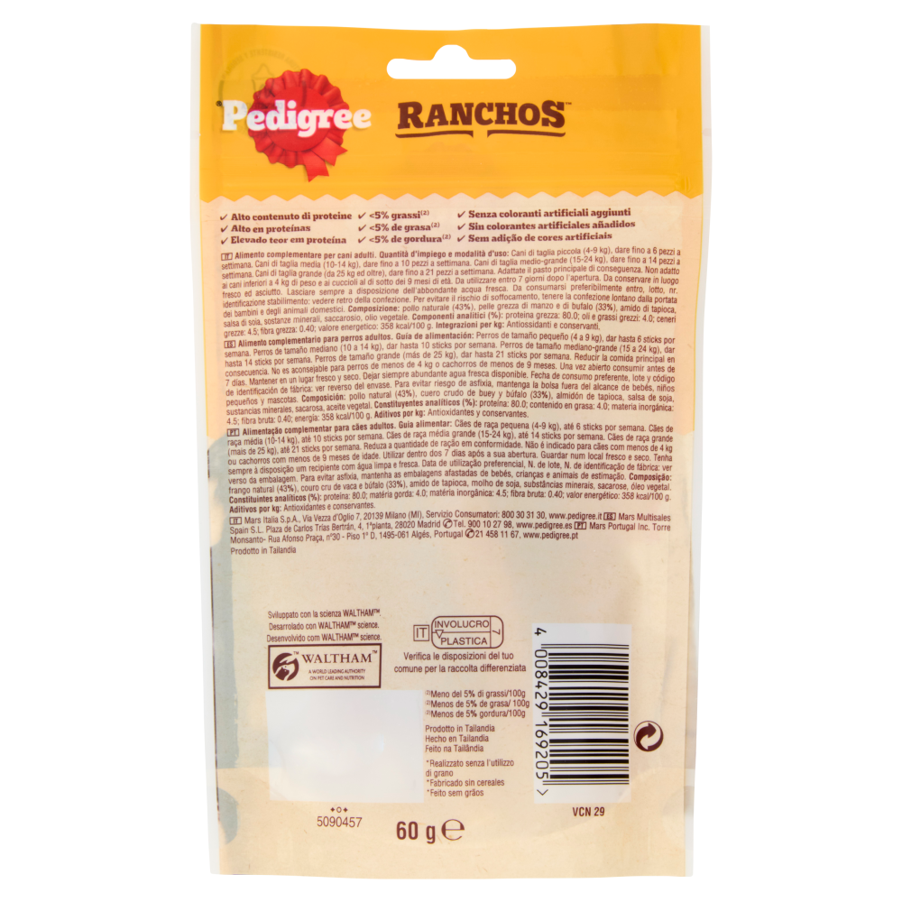 Quantità d'impiego e modalità d'uso: Cani di taglia piccola (4-9 kg), dare fino a 6 pezzi a settimana. Cani di taglia media (10-14 kg), dare fino a 10 pezzi a settimana. Cani di taglia medio-grande (15-24 kg), dare fino a 14 pezzi a settimana. Cani di taglia grande (da 25 kg ed oltre), dare fino a 21 pezzi a settimana. Adattate il pasto principale di conseguenza. Non adatto ai cani inferiori a 4 kg di peso e ai cuccioli al di sotto dei 9 mesi di età. Da utilizzare entro 7 giorni dopo l'apertura. Da conservare in luogo fresco ed asciutto. Lasciare sempre a disposizione dell'abbondante acqua fresca.