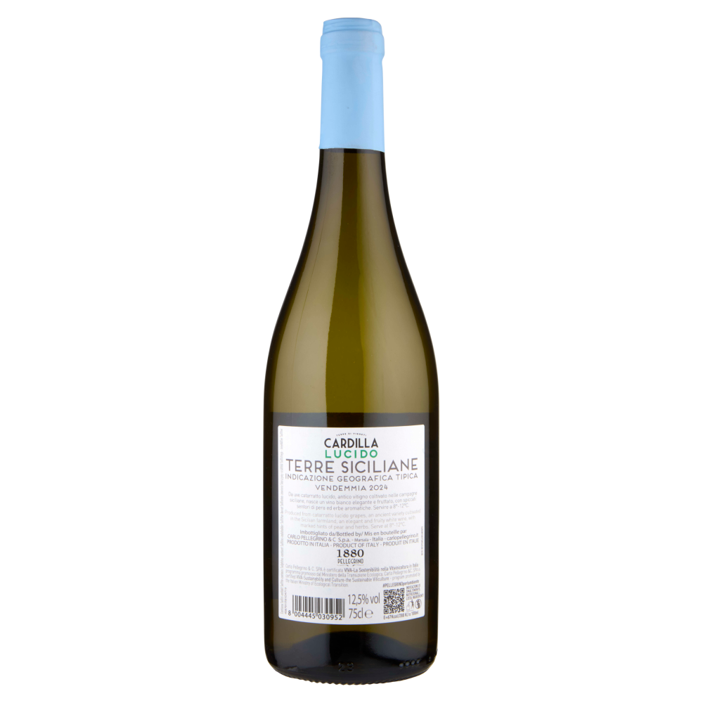 Lucido Terre Siciliane IGT, vino bianco italiano.Da uve catarratto lucido, antico vitigno coltivato nelle campagne siciliane, nasce un vino bianco elegante e fruttato, con spiccati sentori di pera ed erbe aromatiche.Terre SicilianeIndicazione Geografica Tipica