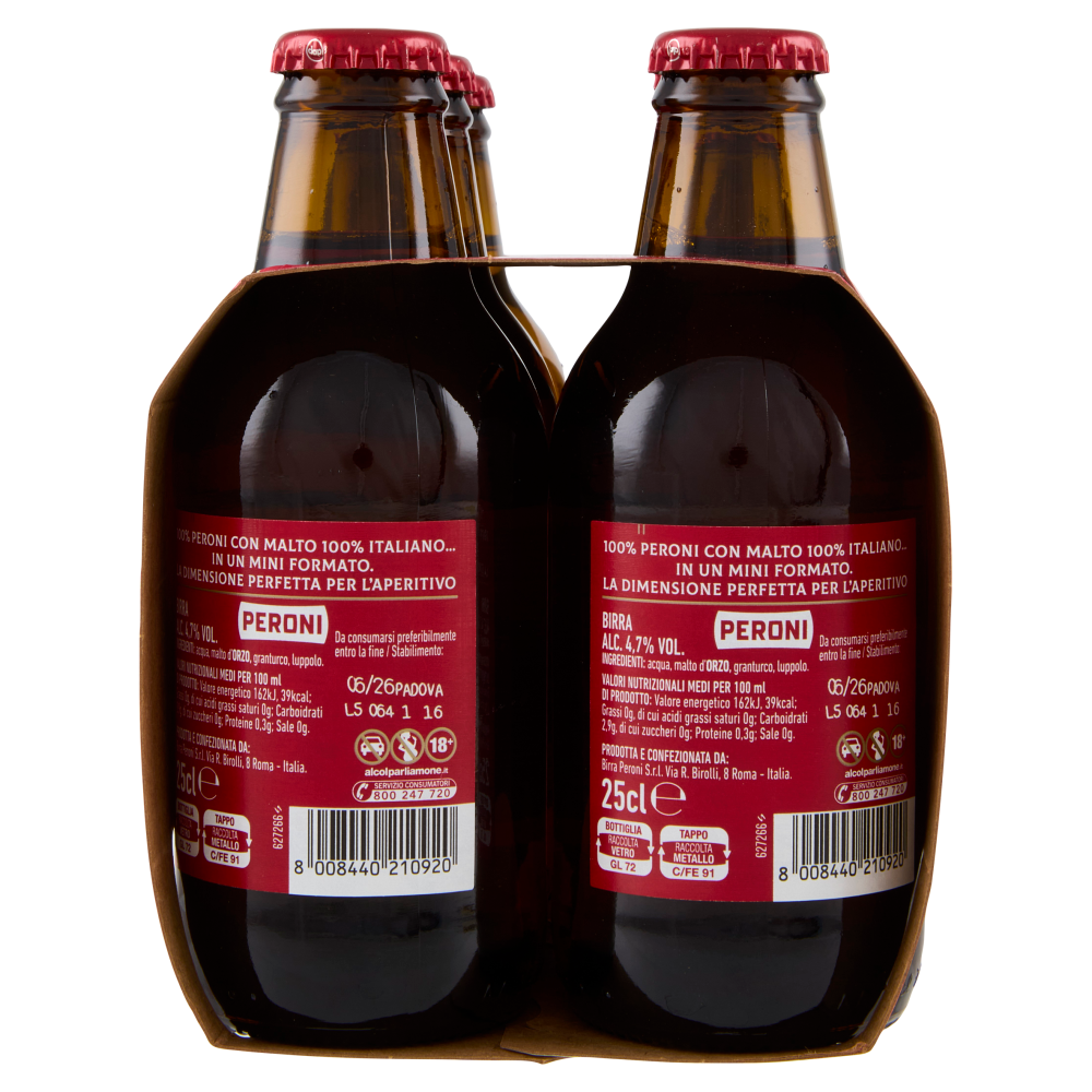 100% Peroni con malto 100% italiano... in un mini formato. La dimensione perfetta per l'aperitivo La lager da gustare in compagnia fino all'ultimo sorso