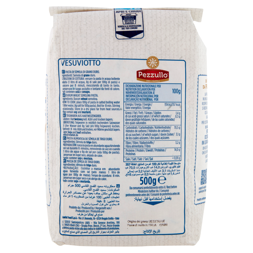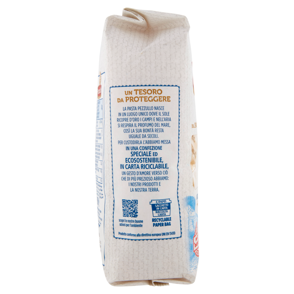Pezzullo Oro di Napoli Dal 1940, passione per la tradizione pastaria Un tesoro da proteggere La pasta Pezzullo nasce in un luogo unico dove il sole ricopre d'oro i campi e nell'aria si respira il profumo del mare, così la sua bontà resta uguale da secoli. Per custodirla l'abbiamo messa in una confezione speciale ed ecosostenibile, in carta riciclabile, un gesto d'amore verso ciò che di più prezioso abbiamo: i nostri prodotti e la nostra terra.
