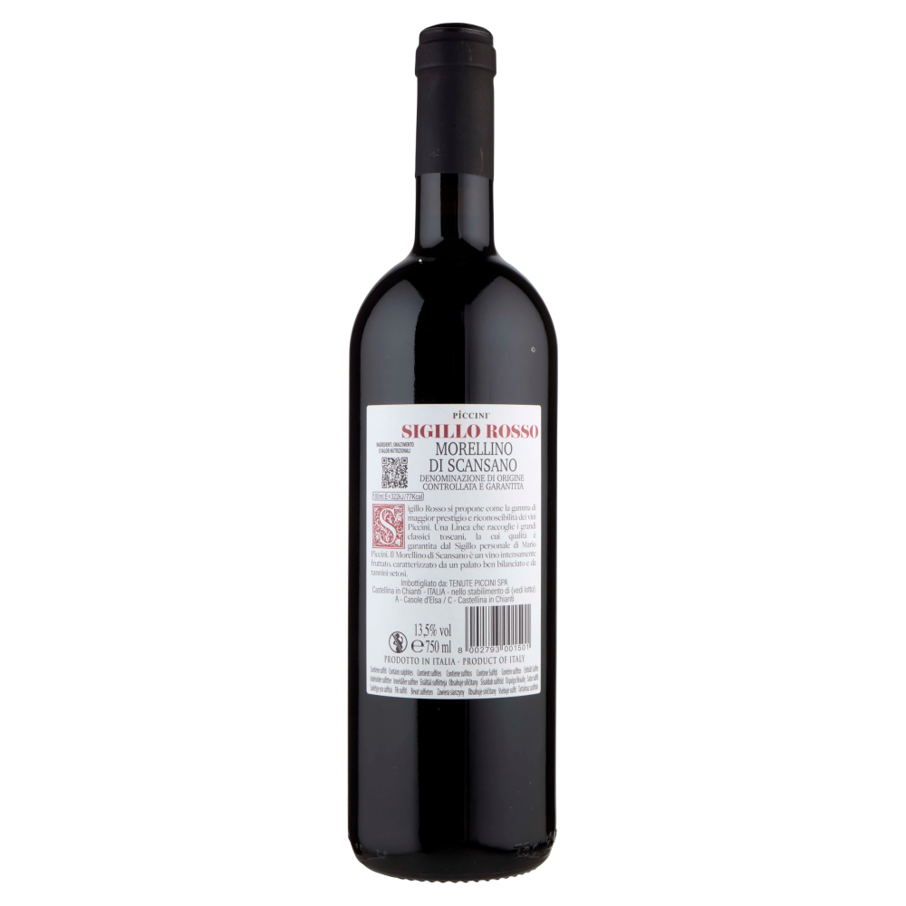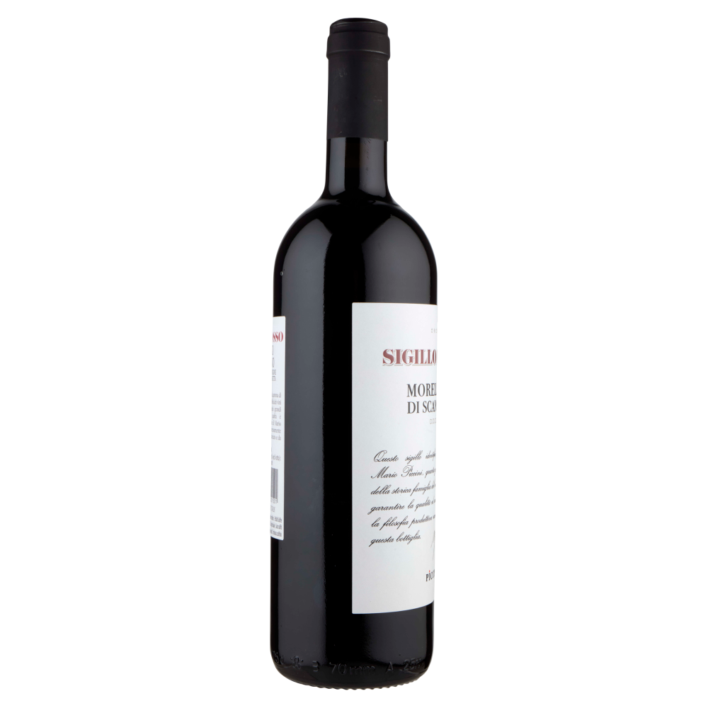 Sigillo Rosso Morellino di Scansano D.O.C.G., vino rosso italiano. Questo sigillo identifica l'impegno di Mario Piccini, quarta generazione della storica famiglia del vino, nel garantire la qualità ed autentica la filosofia produttiva racchiusa in questa bottiglia. Sigillo Rosso si propone come la gamma di maggior prestigio e riconoscibilità dei vini Piccini. Una Linea che raccoglie i grandi classici toscani, la cui qualità é garantita dal Sigillo personale di Mario Piccini. Il Morellino di Scansano è un vino intensamente fruttato, caratterizzato da un palato ben bilanciato e da tannini setosi. Morellino di Scansano Denominazione di Origine Controllata e Garantita