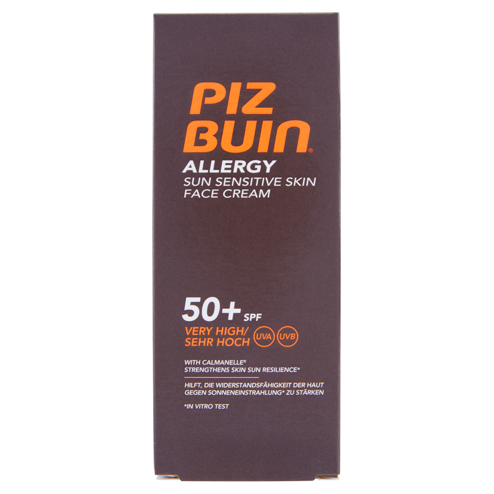 Piz Buin Crema Solare Viso, Allergy, 50+ SPF, Protezione Molto Alta, Resistente All'Acqua 50ml