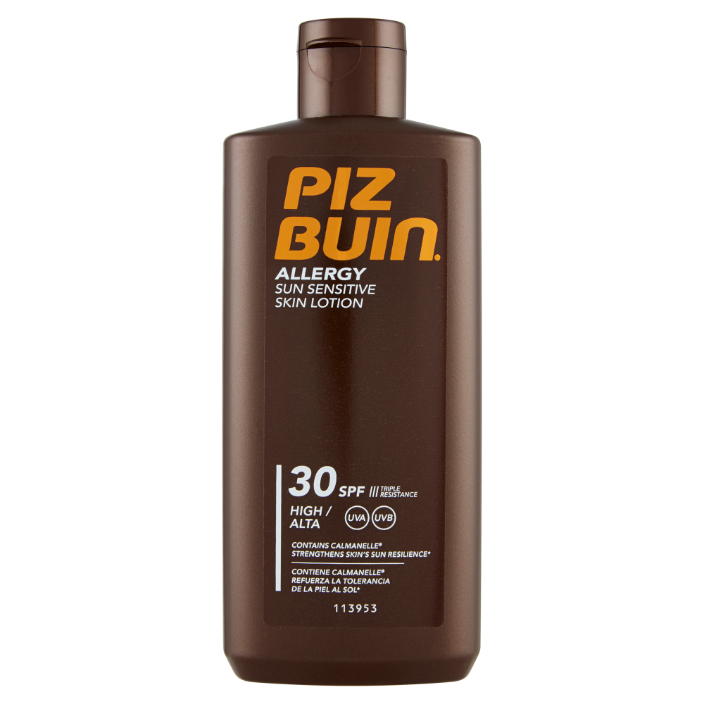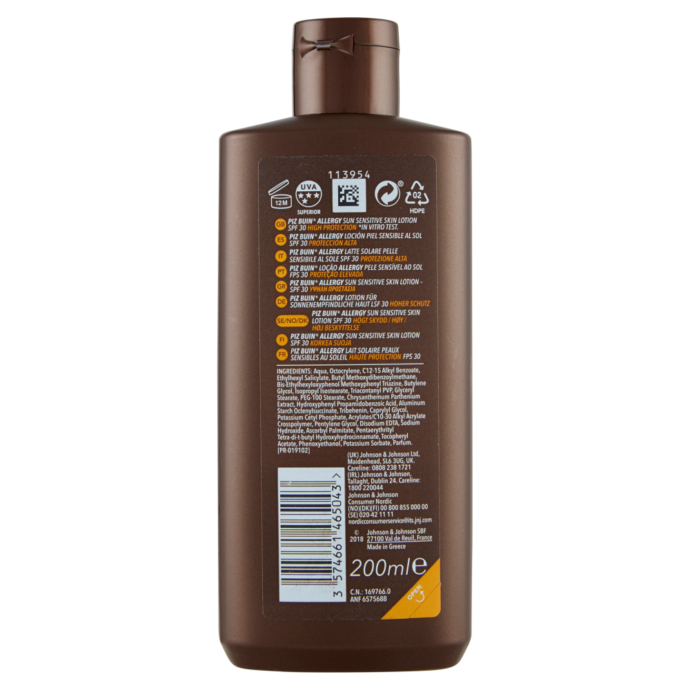 Piz Buin Lozione Solare, Pelle Sensibile, Allergy, 30 SPF, Protezione Alta, 200ml