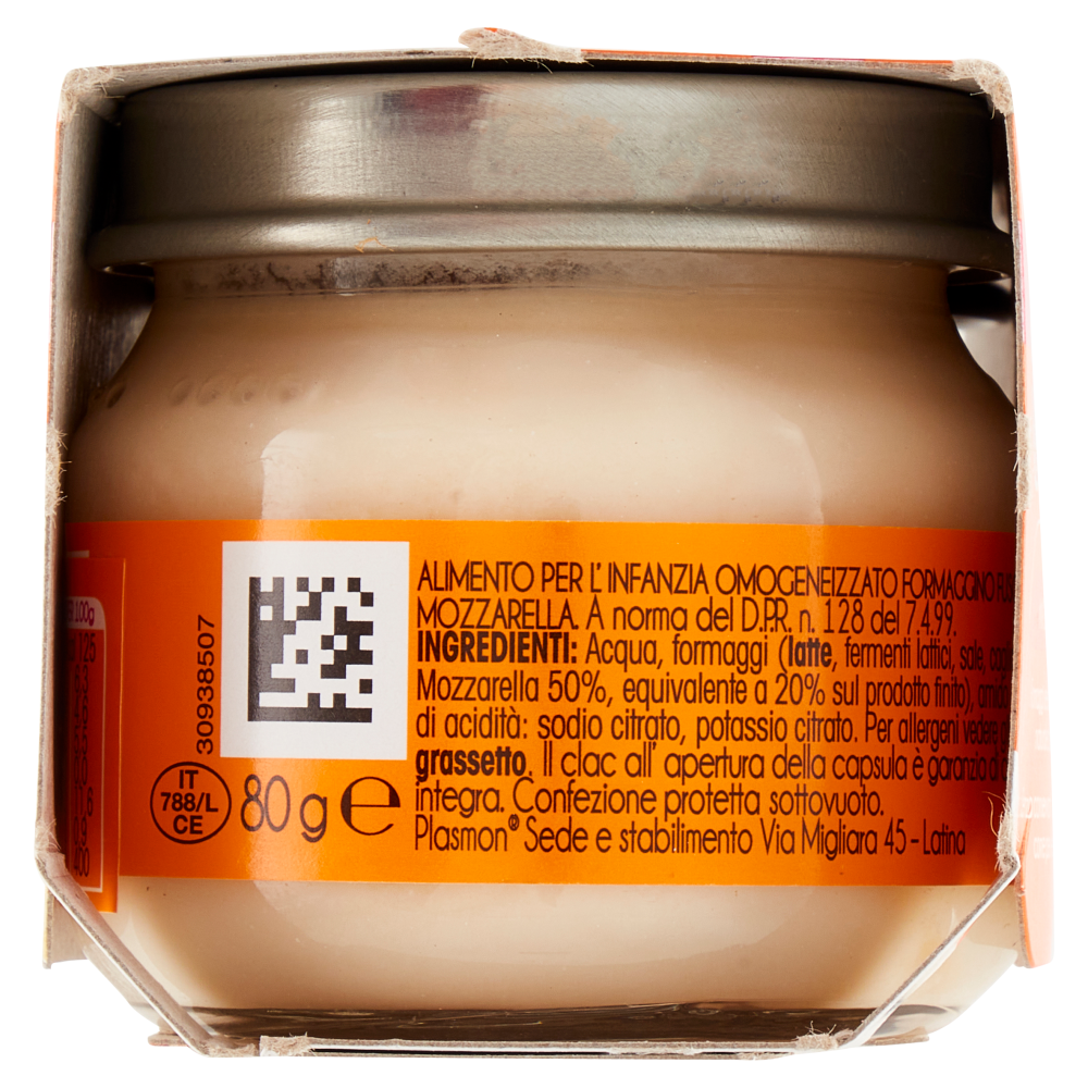 Alimento per l'infanzia, l'Omogeneizzato Formaggino Fuso e Mozzarella Plasmon è un prodotto indicato a partire dall'inizio dello svezzamento, salvo diverso parere del Pediatra.