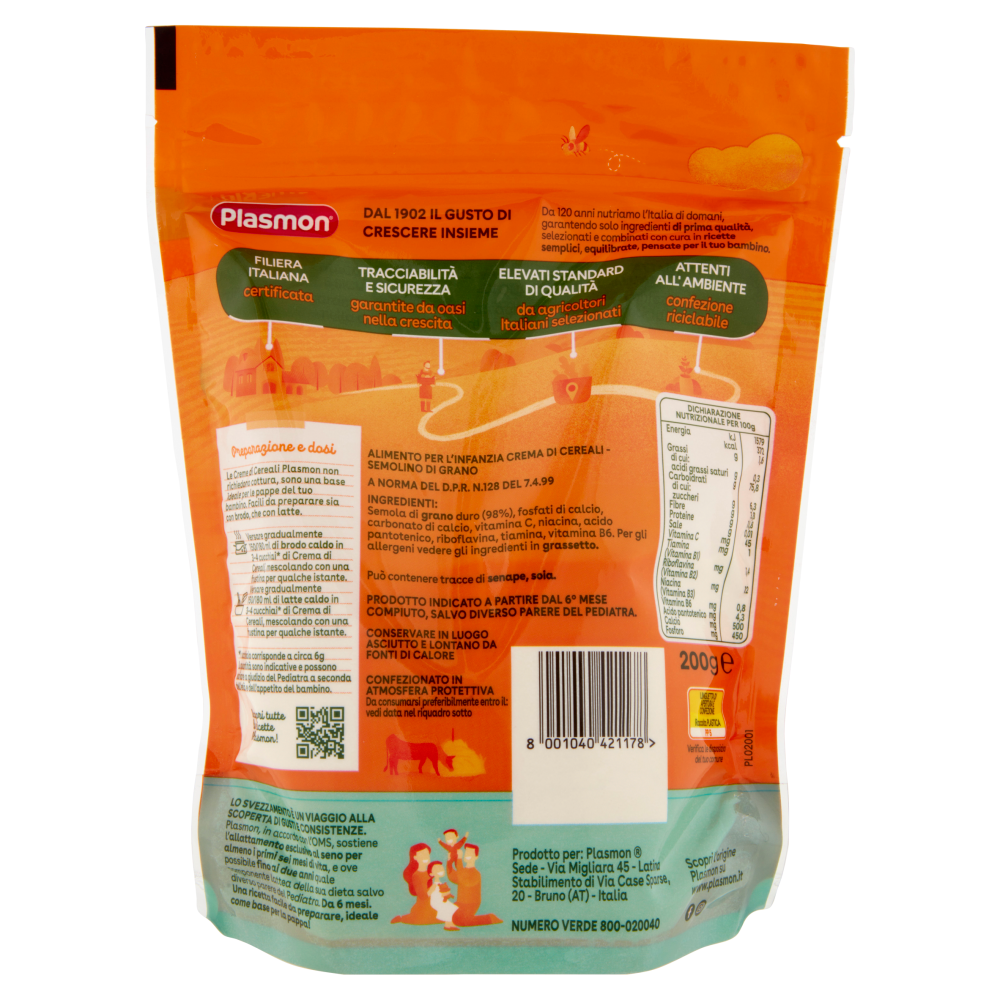 Alimento per l'infanzia crema di cereali - Semolino di grano A norma del D.P.R. n.128 del 7.4.99