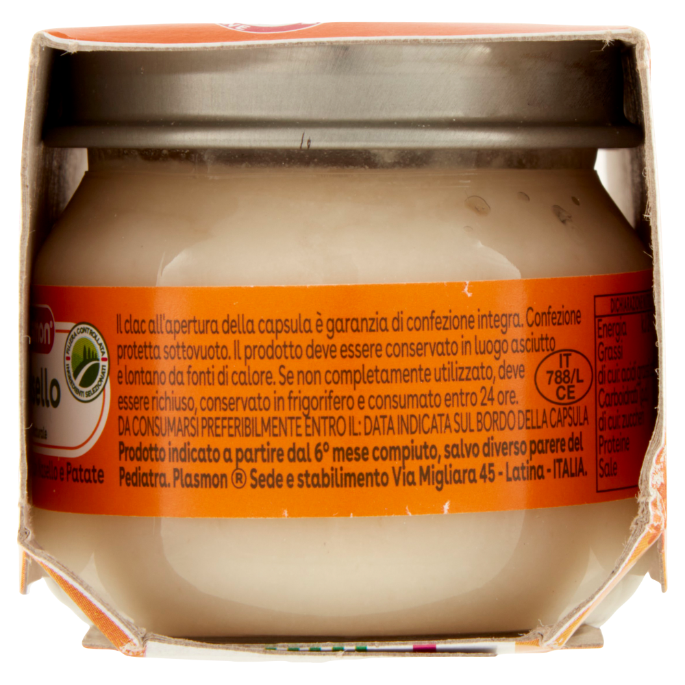 Alimento per l'infanzia, l'Omogeneizzato di Pesce Nasello con Patate Plasmon è un prodotto indicato a partire dall'inizio dello svezzamento, salvo diverso parere del Pediatra.