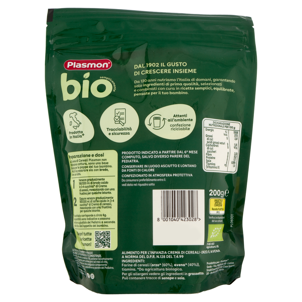Plasmon semplicemente bio crema di orzo e avena 200 g