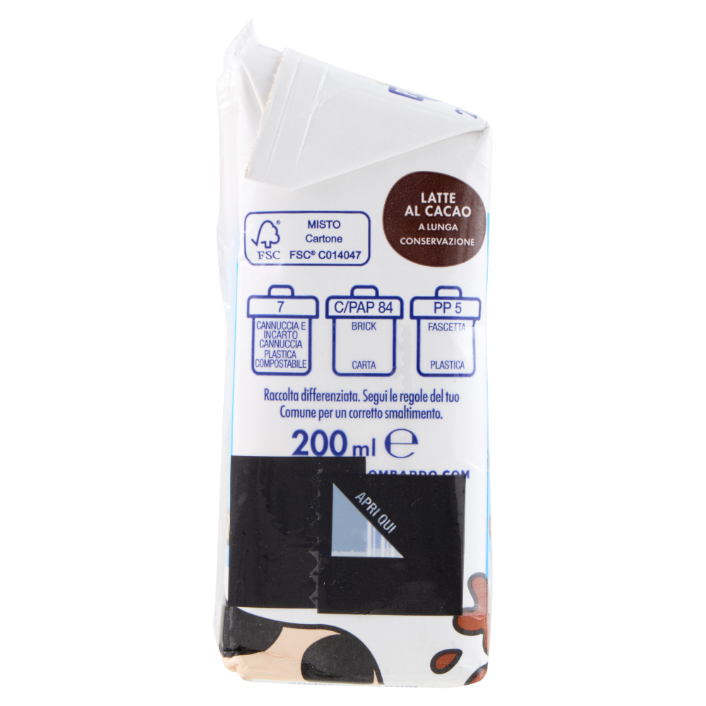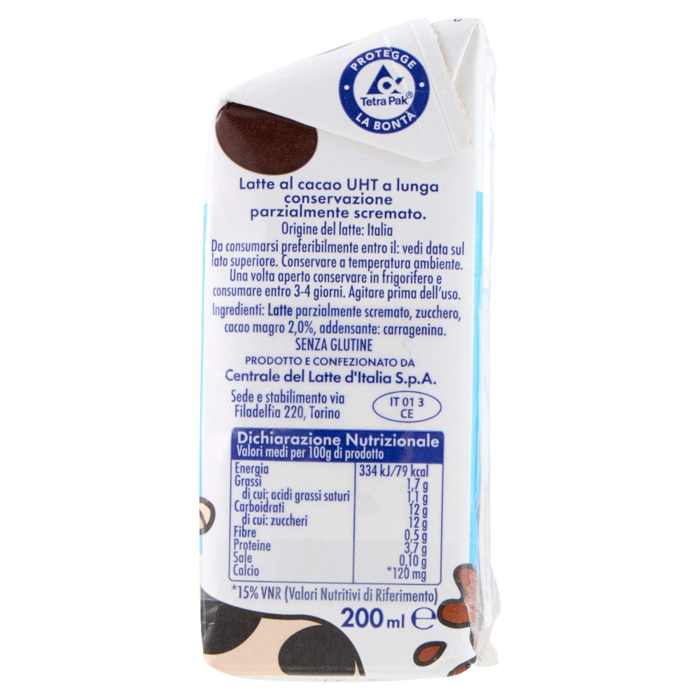 Senza glutineLatte al cacao UHT a lunga conservazione parzialmente scremato Origine del latte: Italia