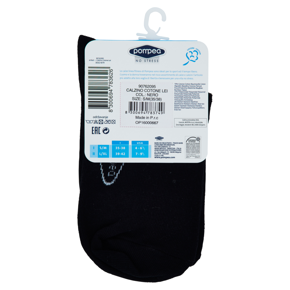 pompea Fitness Calzino Cotone Donna taglia S/M 35/38 Nero
