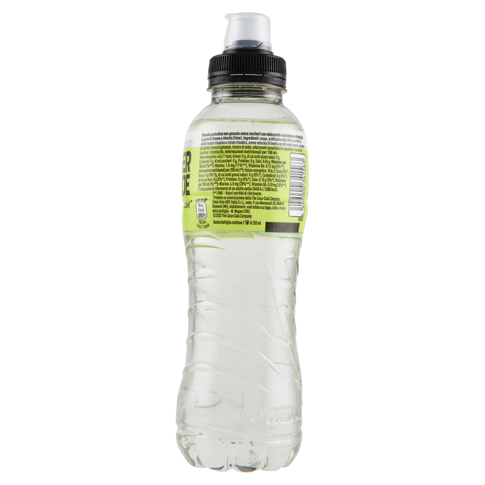 Lemon lime La niacina e la vitamina B6 contribuiscono alla riduzione della stanchezza e dell'affaticamento e al normale metabolismo energetico. Il prodotto va consumato nell'ambito di una dieta variata ed equilibrata ed uno stile di vita sano Riciclami Bottiglia, esclusi etichetta e tappo, realizzata con il 100% di plastica riciclata.