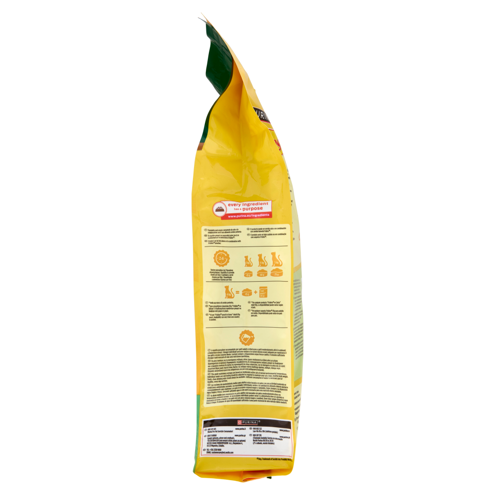 Il prodotto può essere consumato da solo o in combinazione con il suo alimento umido preferito 24 Razione giornaliera (g) Peso del gatto: 3 kg | 45 g Peso del gatto: 4 kg | 60 g Peso del gatto: 5 kg | 75 g Peso del gatto: 4 kg = 45 g + 1 wet pouch** (85 g) **della sua marca di umido preferita. Le quantità giornaliere raccomandate per gatti adulti si riferiscono a gatti moderatamente attivi in ambienti a temperature normali. I bisogni individuali possono variare e le razioni devono essere adeguate per mantenere il tuo gatto a un peso corporeo ideale. Lasciare sempre a disposizione acqua fresca e pulita. Il consumo sufficiente d'acqua è parte necessaria di una sana nutrizione quotidiana.