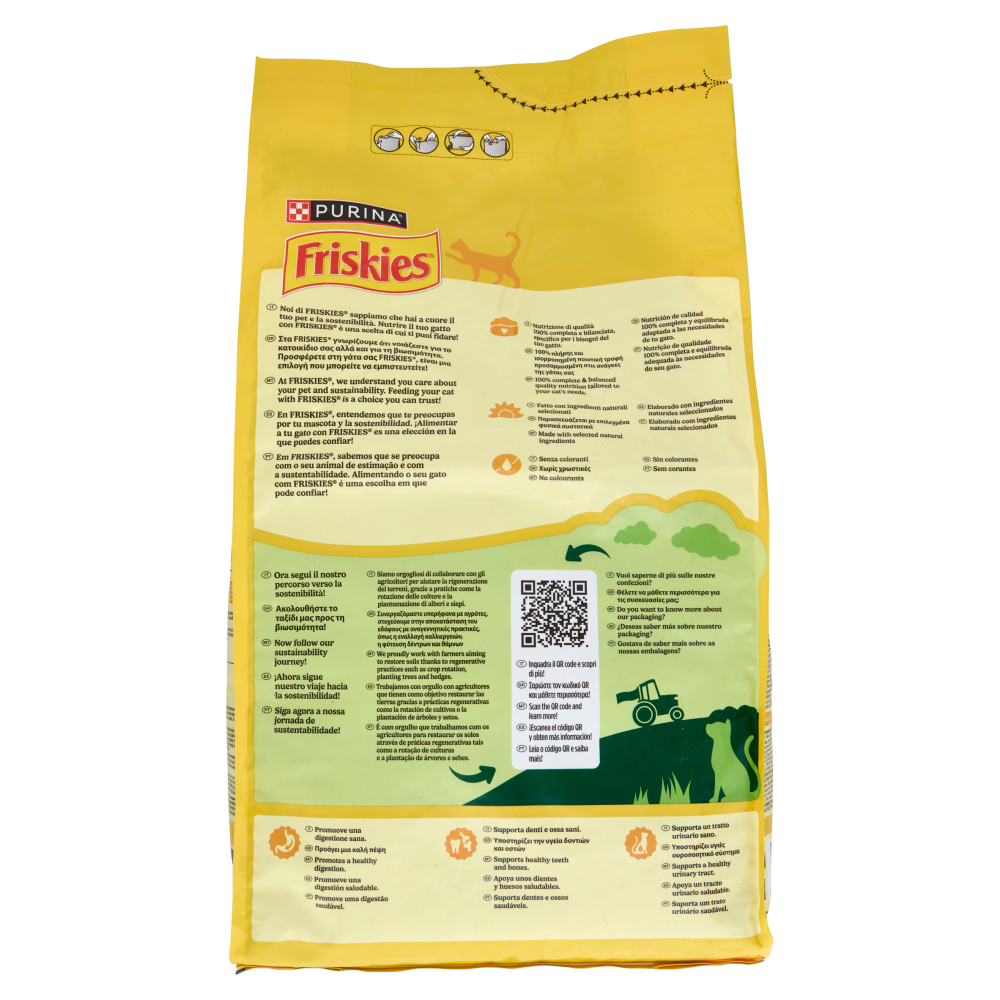 Collaboriamo con gli agricoltori per aiutare la rigenerazione dei terreni. Noi di FRISKIES sappiamo che hai a cuore il tuo pet e la sostenibilità. Nutrire il tuo gatto con FRISKIES è una scelta di cui ti puoi fidare! Ora segui il nostro percorso verso la sostenibilità! Siamo orgogliosi di collaborare con gli agricoltori per aiutare la rigenerazione dei terreni, grazie a pratiche come la rotazione delle colture e la piantumazione di alberi e siepi. Vuoi saperne di più sulle nostre confezioni? Inquadra il QR code e scopri di più!