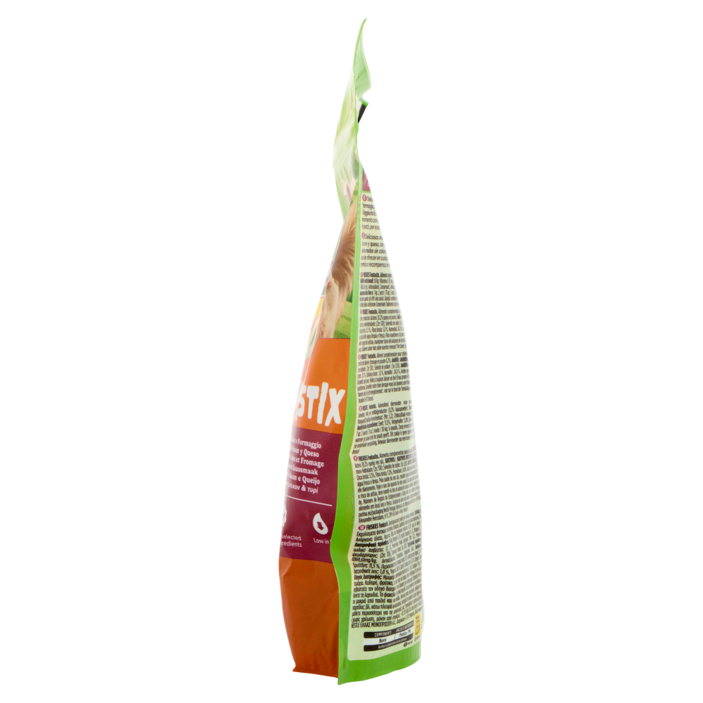 *Senza zuccheri aggiunti *Contiene naturalmente zuccheri Preparato senza coloranti Acidi grassi Omega 3 & 6 Basso contenuto di grassi Vitamine Deliziose golosità intrecciate al gusto bacon e formaggio, preparate con ingredienti gustosi, senza l'aggiunta di coloranti. Friskies Funtastix è adatto in ogni momento come premio o ricompensa, intero o spezzato in pezzi, per essere gustato in un solo boccone. -No added sugar* - Delizioso gusto Bacon e Formaggio - Vitamins - Made with selected quality ingredients - Low in fat - *Contiene naturalmente zuccheri