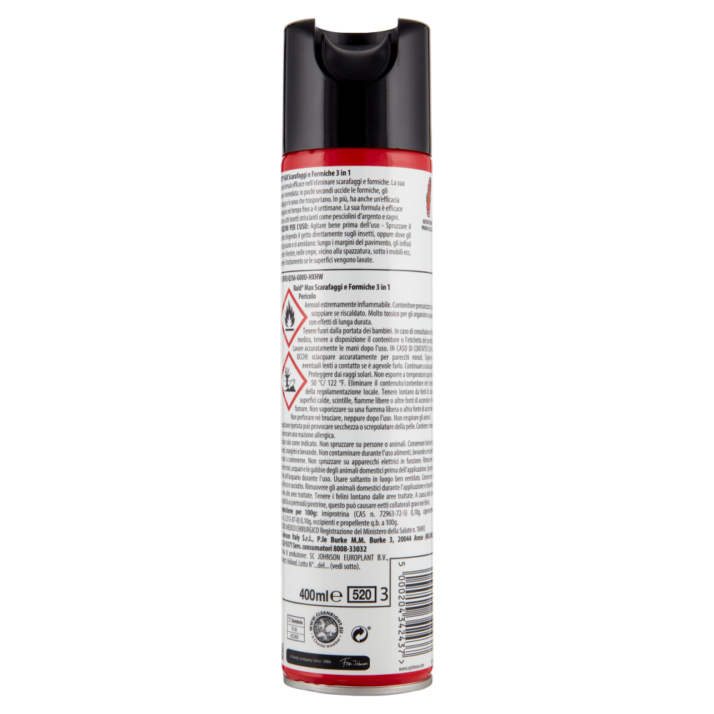 Raid Aerosol Max Scarafaggi e Formiche 3 in 1, Spray Insetticida, Efficace per 4 Settimane, 400 ml