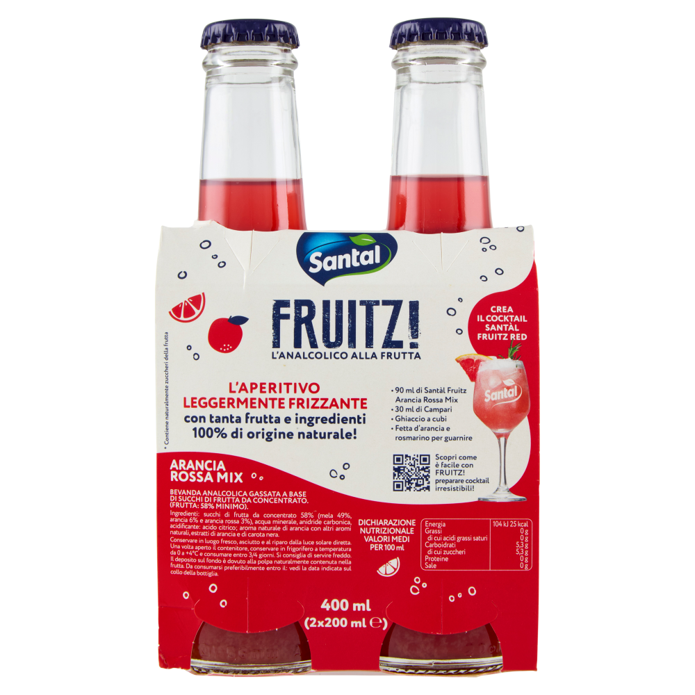 Il deposito sul fondo è dovuto alla polpa naturalmente contenuta nella frutta. Contiene 2 bottiglie da 200 ml ℮ Scopri i nuovi cocktail Fruitz! le iniziative Santàl e le indicazioni per lo smaltimento della confezione. Verifica le disposizioni del tuo comune.