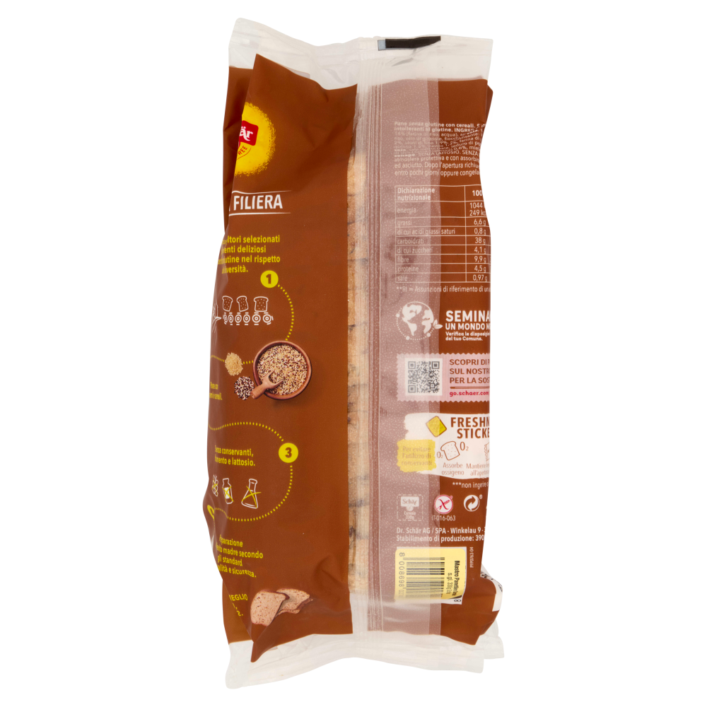 La nostra filiera 1 Lavoriamo con agricoltori selezionati per offrirvi alimenti deliziosi e certificati senza glutine nel rispetto della biodiversità. 2 Pane con 7 semi e cereali. 3 Senza conservanti, frumento e lattosio. 4 Preparazione con lievito madre secondo gli standard di qualità e sicurezza. Il nostro meglio per voi, dal 1922. Per evitare l'utilizzo di conservanti Freshness sticker*** - All'interno Assorbe ossigeno Mantiene fresco il prodotto find all'apertura della confezione ***non ingerire o tagliare