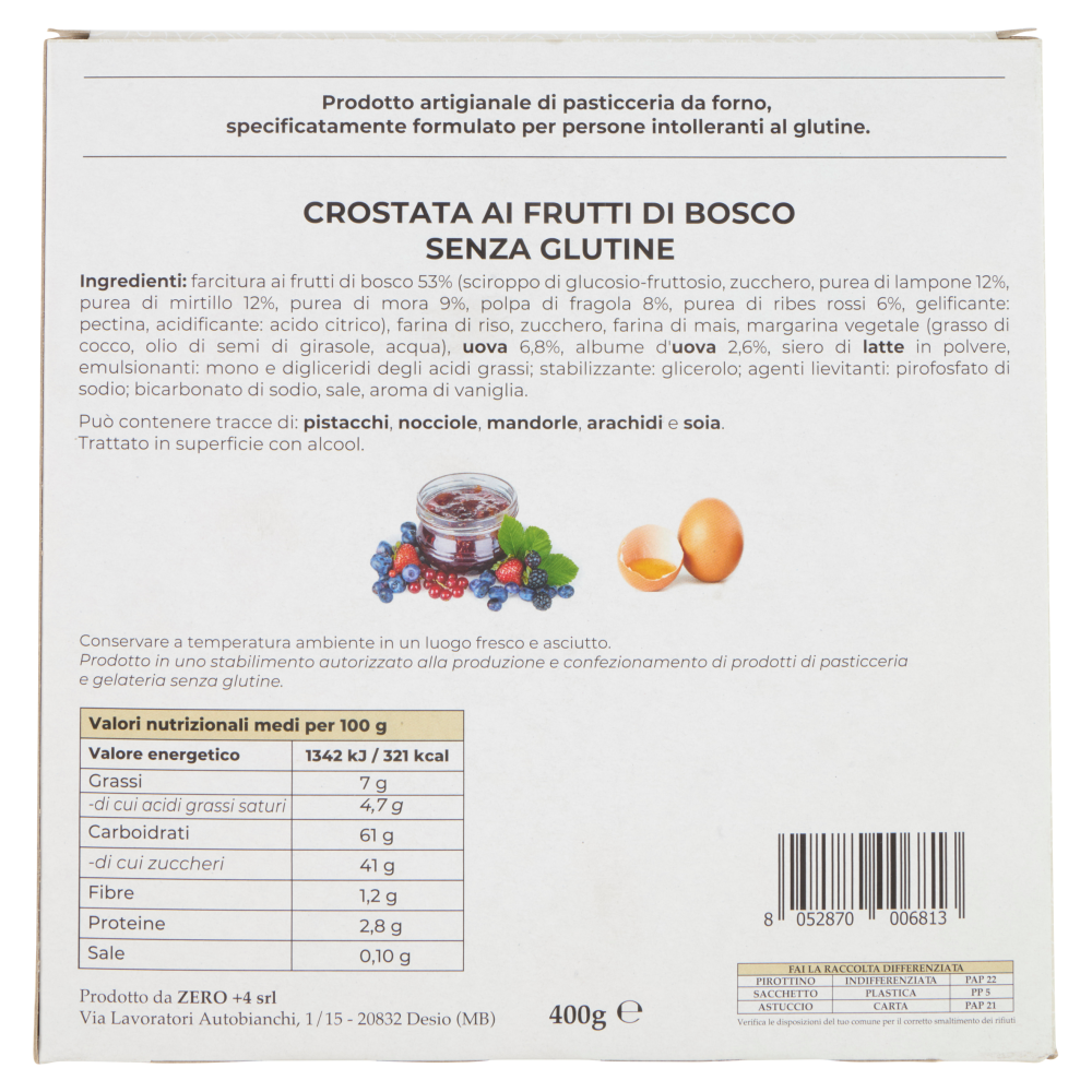 Senza glutineProdotto artigianale di pasticceria da forno, specificatamente formulato per persone intolleranti al glutine Crostata ai frutti di bosco Senza glutine