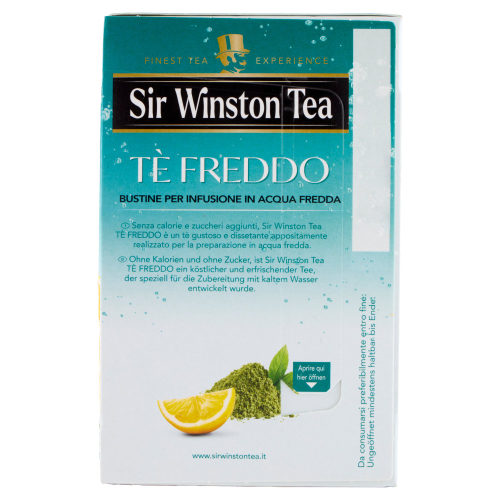 Senza calorie e zuccheri aggiunti, Sir Winston Tea Tè Freddo è un tè gustoso e dissetante appositamente realizzato per la preparazione in acqua fredda.