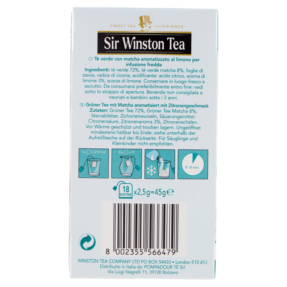 Sir Winston Tea Tè Freddo Ice Tea Matcha Limone 18 x 2,5 g