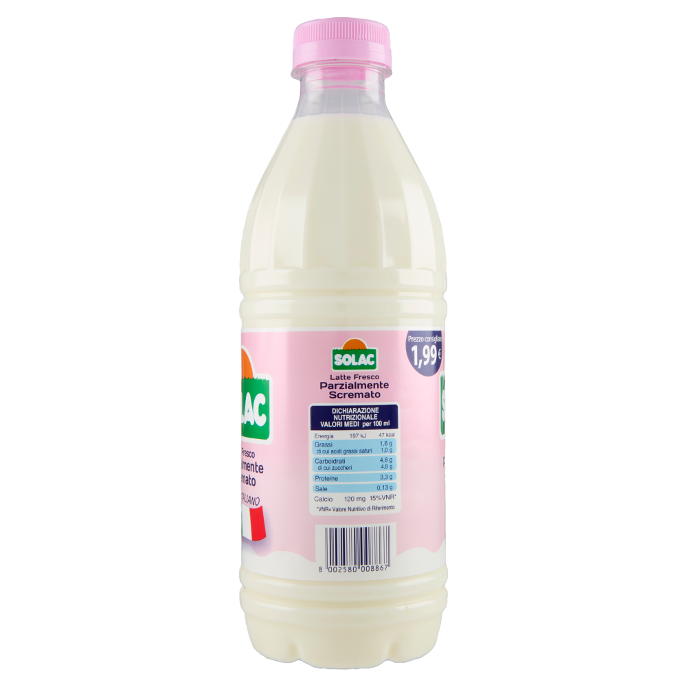 Solac Latte Fresco Parzialmente Scremato 100% Italiano 1000 ml