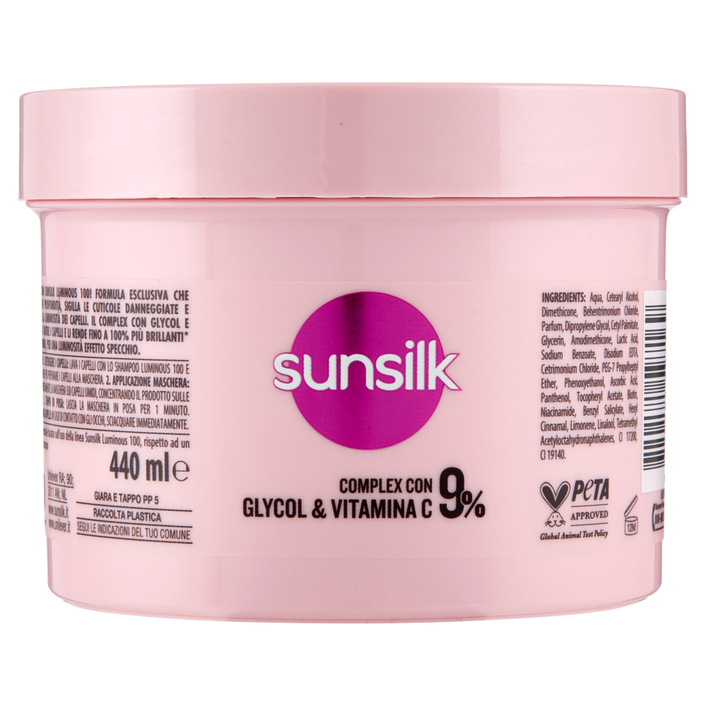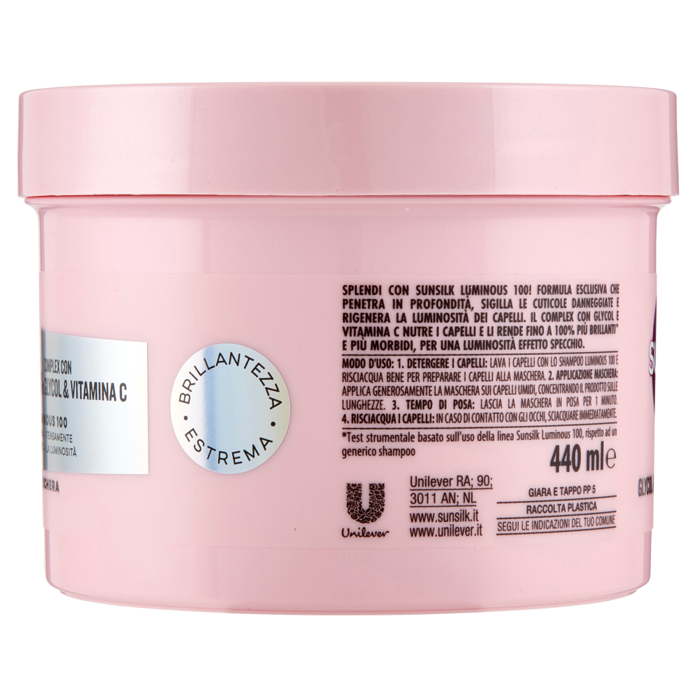 Splendi con Sunsilk Luminous 100! Formula esclusiva che penetra in profondità, sigilla le cuticole danneggiate e rigenera la luminosità dei capelli. Il complex con glycol e vitamina C nutre i capelli e li rende fino a 100% più brillanti* e più morbidi, per una luminosità effetto specchio. *Test strumentale basato sull'uso della linea Sunsilk Luminous 100, rispetto ad un generico shampoo