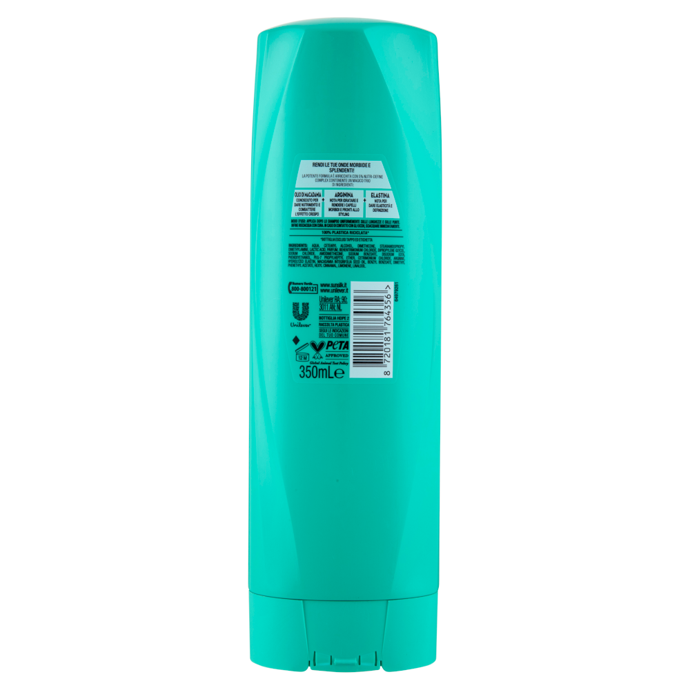 Rendi le tue Onde Morbide e splendenti! La potente formula è arricchita con 5% nutri-define complex contenente un magico trio di ingredienti: Olio di macadamia conosciuto per dare nutrimento e combattere l'effetto crespo + Arginina nota per idratare e rendere i capelli morbidi e pronti allo styling + Elastina nota per dare elasticità e definizione 100% Plastica riciclata* *Bottiglia esclusi tappo ed etichetta