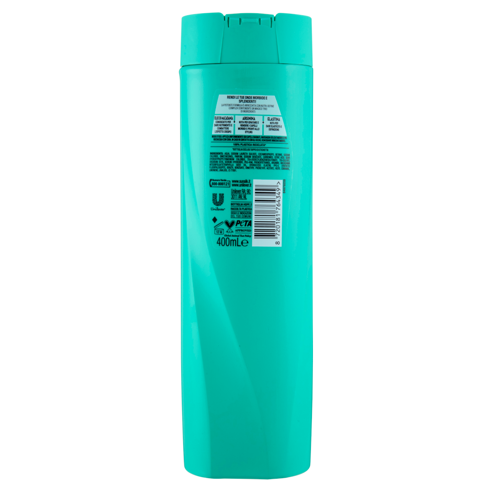 Rendi le tue onde morbide e splendenti! La potente formula è arricchita con nutri-define complex contenente un magico trio di ingredienti: Olio di macadamia conosciuto per dare nutrimento e combattere l'effetto crespo + Arginina nota per idratare e rendere i capelli morbidi e pronti allo styling + Elastina nota per dare elasticità e definizione 100% Plastica riciclata* *Bottiglia esclusi tappo ed etichetta