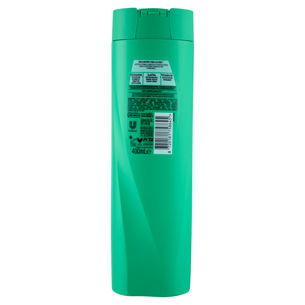 Ricci definiti fino a 24 ore*! La potente formula è arricchita con nutri-elastic complex contenente un magico trio di ingredienti: Olio di macadamia noto per dare nutrimento e combattere l'effetto crespo + Elastina nota per idratare e rendere i ricci più elastici e definiti + Vitamina B5 nota per nutrire intensamente *Test strumentale basato sull'uso di shampoo e balsamo Ricci da Sogno, rispetto ad un generico shampoo. 100% Plastica riciclata** **Bottiglia esclusi tappo ed etichetta