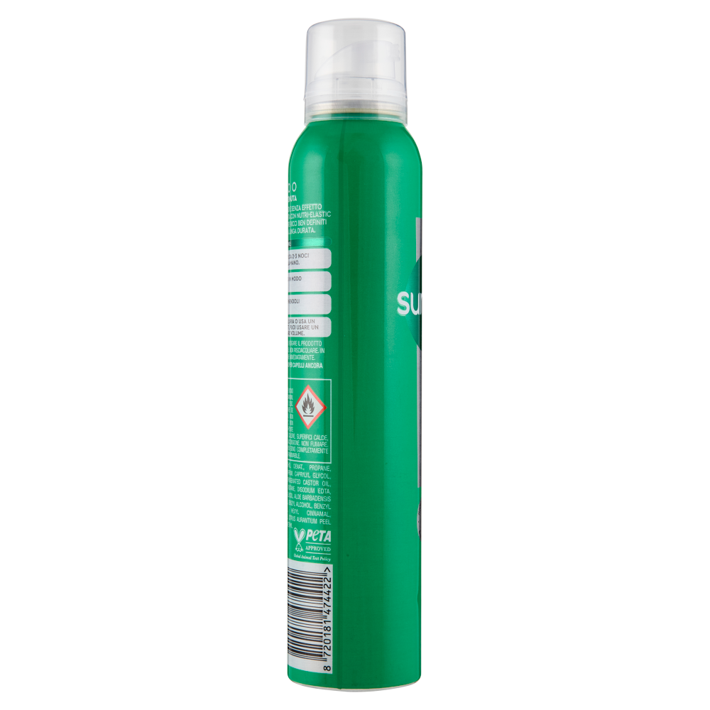 PRECAUZIONI ED AVVERTENZE: USARE SOLO COME INDICATO. NON SPRUZZARE VICINO AGLI OCCHI. TENERE FUORI DALLA PORTATA DEI BAMBINI. NON PERFORARE NÈ BRUCIARE, NEPPURE DOPO L'USO. RECIPIENTE SOTTO PRESSIONE: PUÒ SCOPPIARE SE RISCALDATO. PROTEGGERE DAI RAGGI SOLARI. NON ESPORRE A TEMPERATURE SUPERIORI A 50 °C. NON VAPORIZZARE SU UNA FIAMMA LIBERA O ALTRA FONTE DI ACCENSIONE. TENERE LONTANO DA FONTI DI CALORE, SUPERFICI CALDE, SCINTILLE, FIAMME LIBERE O ALTRE FONTI DI ACCENSIONE. NON FUMARE. PRODOTTO INFIAMMABILE FINCHÈ I CAPELLI NON SONO COMPLETAMENTE ASCIUTTI. PERICOLO AEROSOL ESTREMAMENTE INFIAMMABILE.