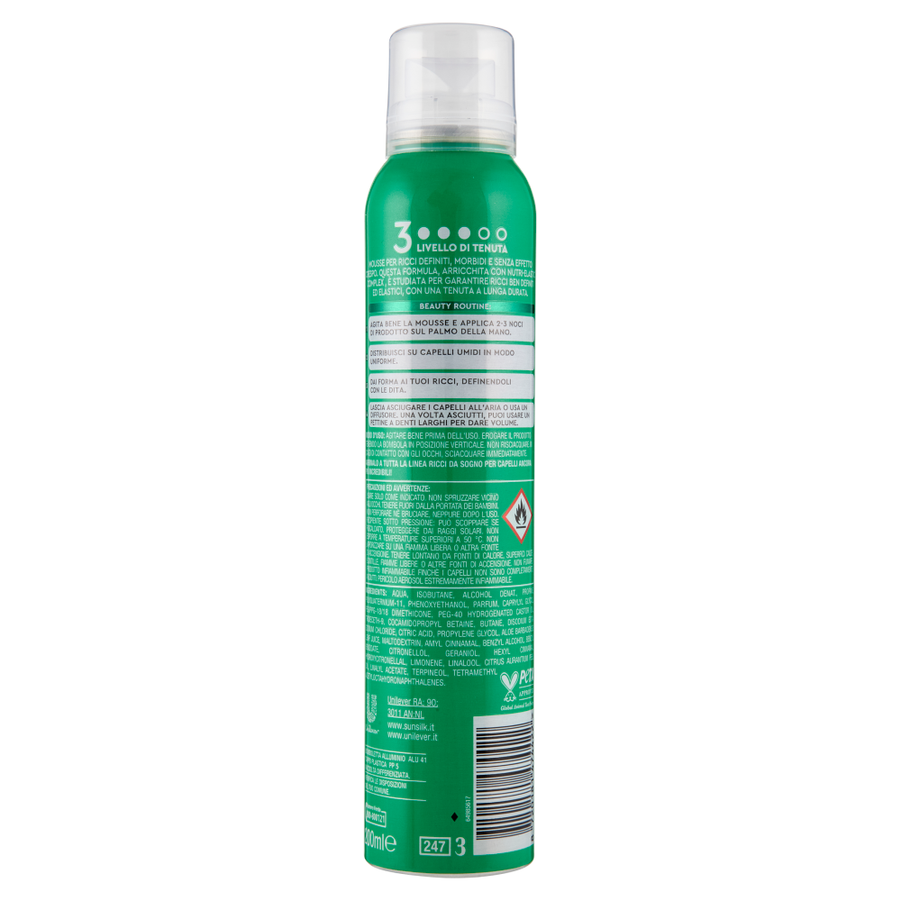 Beauty routine: 1 Agita bene la mousse e applica 2-3 noci di prodotto sul palmo della mano 2 Distribuisci su capelli umidi in modo uniforme. 3 Dai forma ai tuoi ricci, definendoli con le dita. 4 Lascia asciugare i capelli all'aria o usa un diffusore. Una volta asciutti, puoi usare un pettine a denti larghi per dare volume. Modo d'uso: Agitare bene prima dell'uso. Erogare il prodotto tenendo la bombola in posizione verticale. Non risciacquare. In caso di contatto con gli occhi, sciacquare immediatamente.