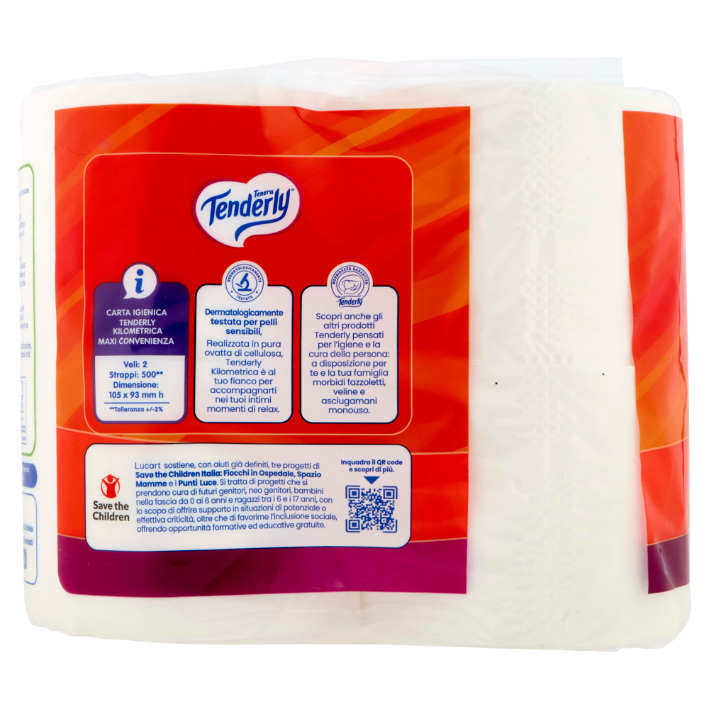 Carta igienica tenderly kilometrica maxi convenienza Veli: 2 Strappi: 500** Dimensione: 105 x 93 mm h **Tolleranza +/-2%