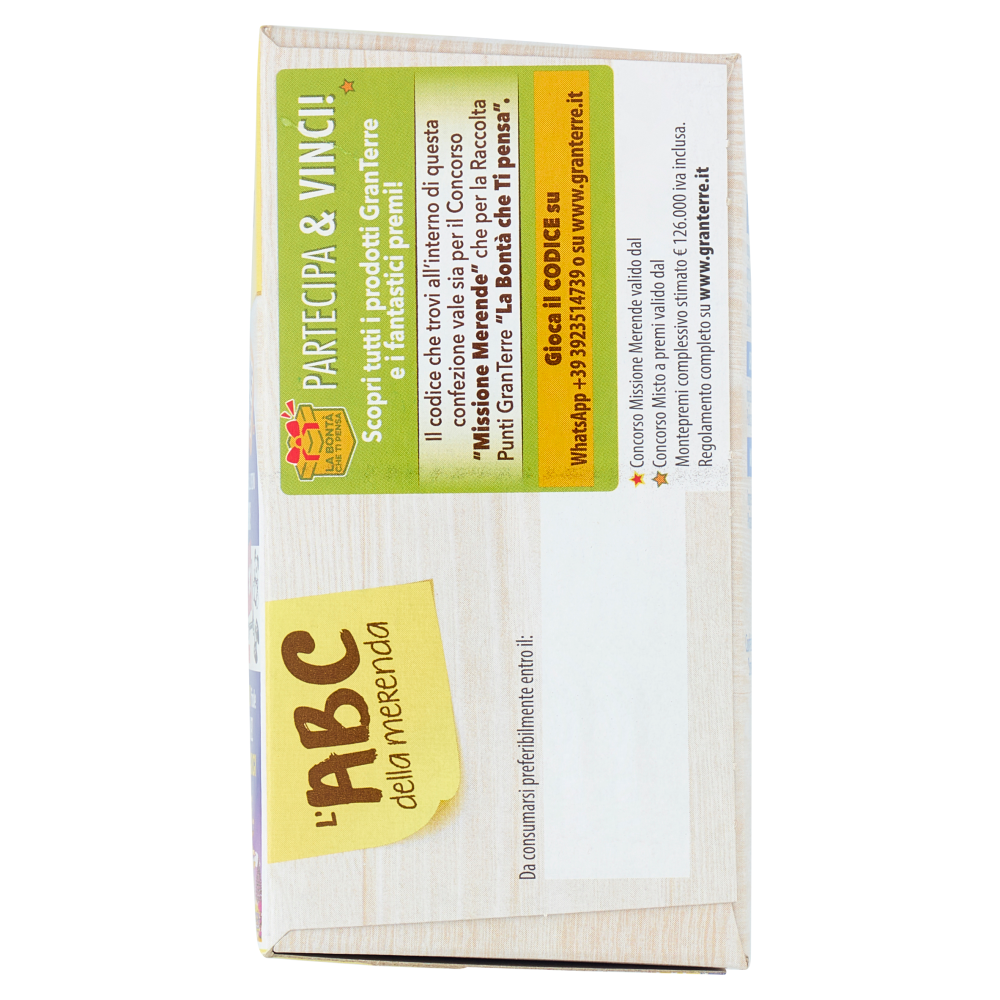 Astuccio esterno per il 90% da carta riciclata La merenda completa e bilanciata studiata con l'esperto in nutrizione dott. Giorgio Donegani Lo studio si basa sul fabbisogno di un bambino tra gli 8 e i 10 anni di consumare a merenda circa 200 kcal. Questo fabbisogno dovrebbe essere apportato in modo bilanciato: - Per il 45-60% da carboidrati - Per il 10-20% da proteine - Per il 20-35% da grassi