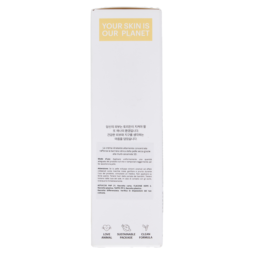La crema idratante altamente concentrata rafforza la barriera idrica della pelle secca grazie alla multi-ceramide 5D.