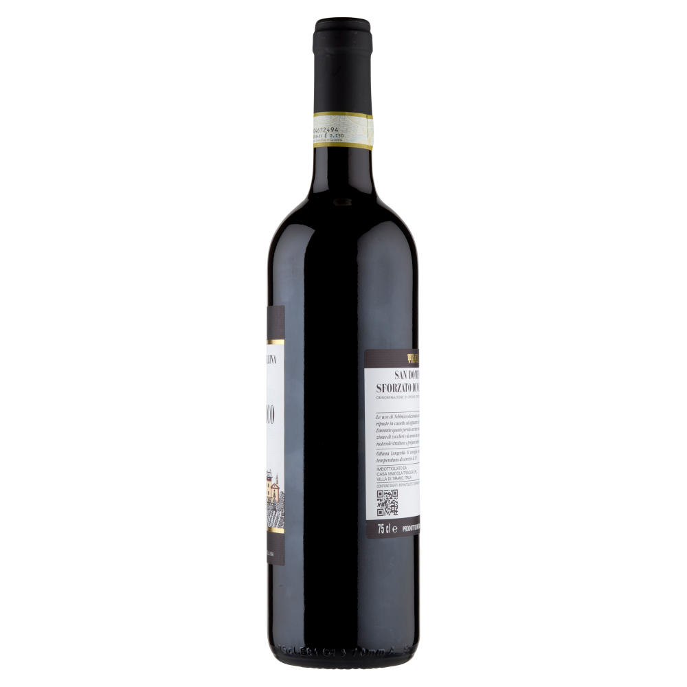 Sforzato di Valtellina DOCG San Domenico, vino rosso italiano. Le uve di Nebbiolo selezionate accuratamente vengono riposte in cassette ad appassire nel fruttaio. Durante questo periodo avviene una sensibile concentrazione di zuccheri e di aromi che conferiscono al vino una notevole struttura e profumi intensi. Sforzato di Valtellina Denominazione di Origine Controllata e Garantita