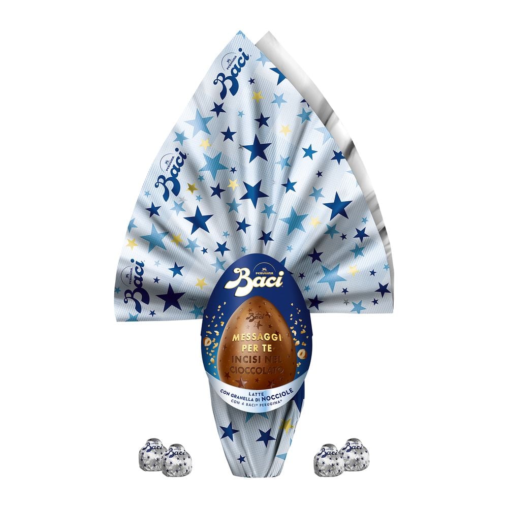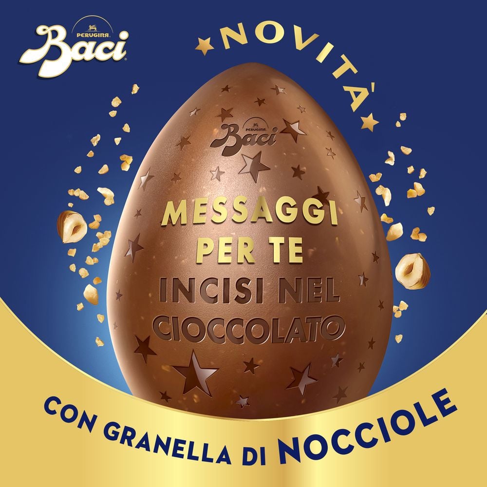 Uovo di cioccolato al latte con granella di nocciole caramellata 10% Baci Latte - Pralina di cioccolato al latte ripieno con nocciole