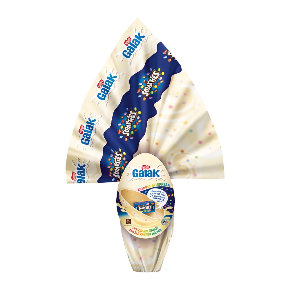 Uovo di Pasqua Cioccolato Bianco con Sorpresa e Mini SMARTIES 240g