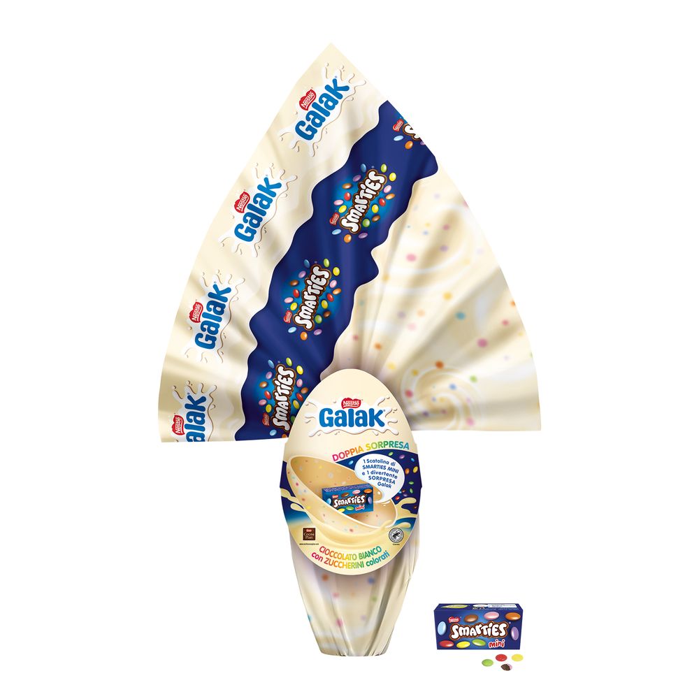 - Doppia sorpresa - 1 Scatolina di Smarties Mini e 1 divertente Sorpresa Galak - Cioccolato bianco con Zuccherini colorati