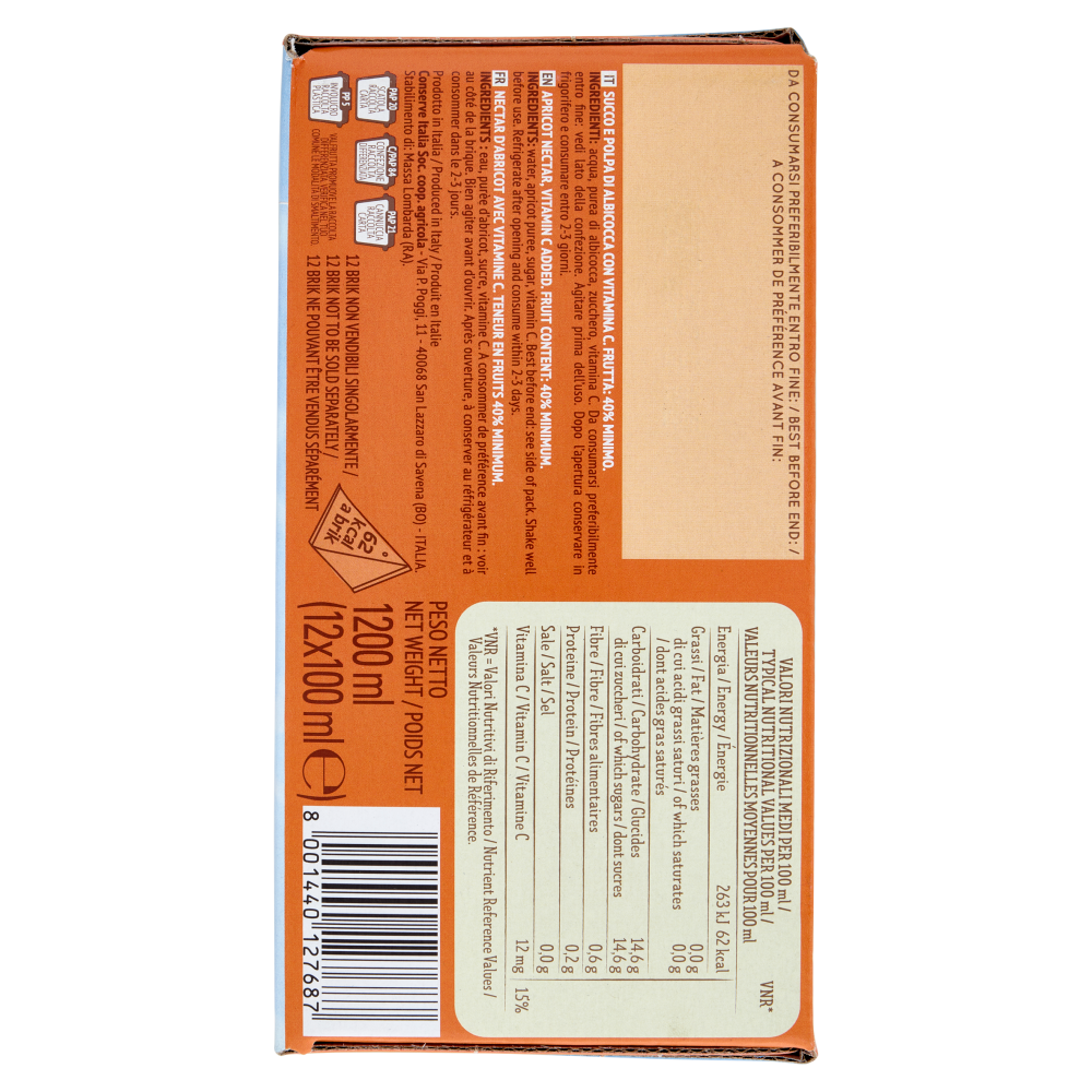 Succo e polpa di albicocca con vitamina C 62 kcal a brik