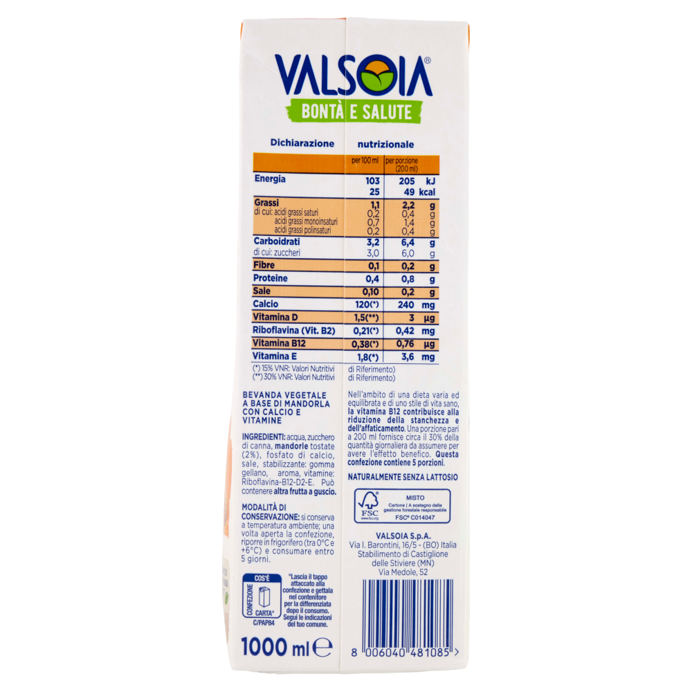 Da sempre Valsoia Bontà e Salute si prende cura del tuo benessere con tanti prodotti di qualità. Puoi fidarti di Valsoia, perché ci dedichiamo con passione alla ricerca delle ricette più innovative e alla selezione dei migliori ingredienti. FSC - Foreste per tutti per sempre Acquistando questa confezione in cartone contribuisci alla salvaguardia delle foreste. Scopri tutte le bevande e gli altri prodotti Valsoia su www.valsoia.it
