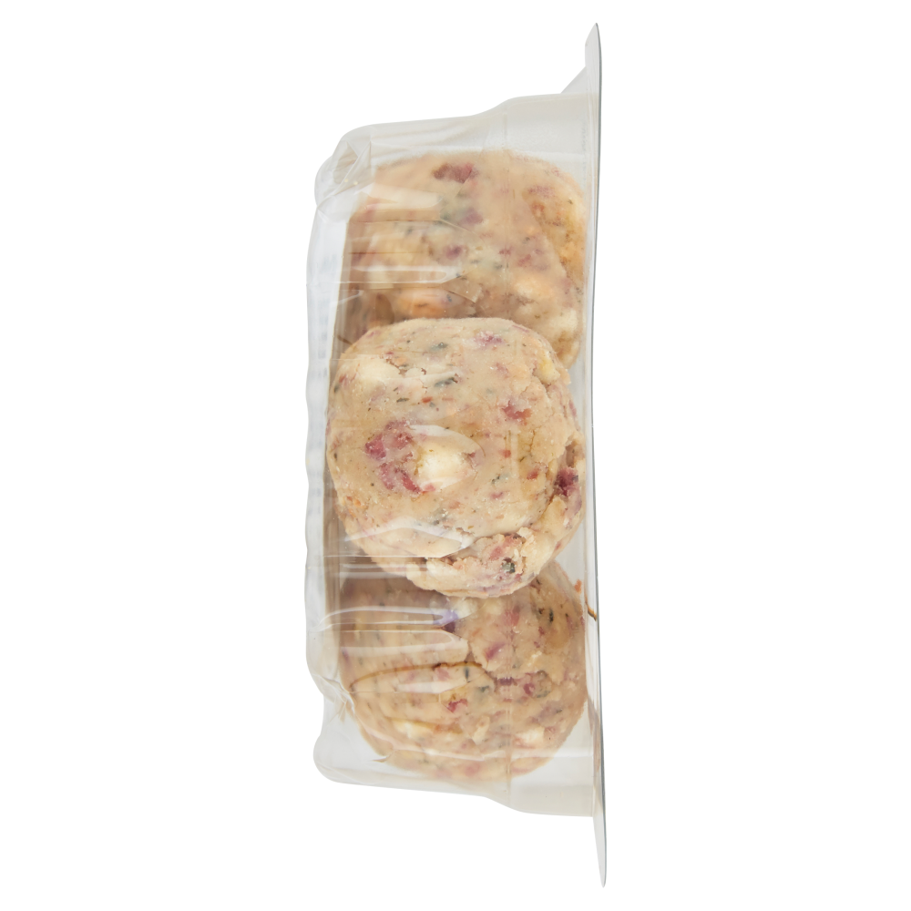 Cottura: versare il prodotto in brodo o acqua bollente. Quando i canederli affiorano proseguire la cottura per altri 10 minuti, quindi scolarli e servire a piacere. Consigli per la degustazione: i canederli sono ottimi serviti in brodo, con del semplice burro e salvia cosi come con condimenti più corposi. Previa cottura sono ideali anche per la preparazione di piatti freddi e stuzzichini.