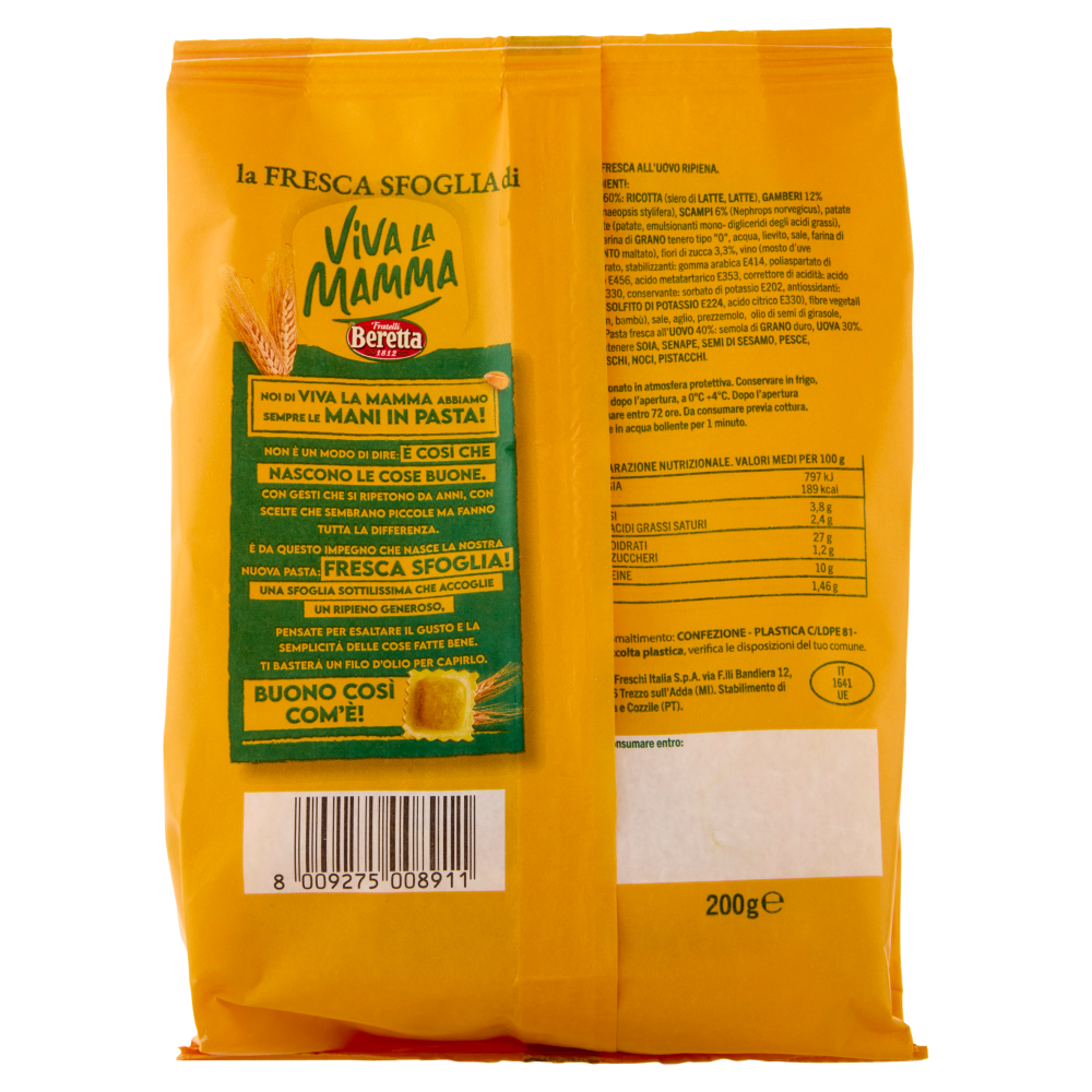 Viva la Mamma la Fresca Sfoglia di Ravioli con Gamberi, Scampi e Fiori di Zucca 200 g