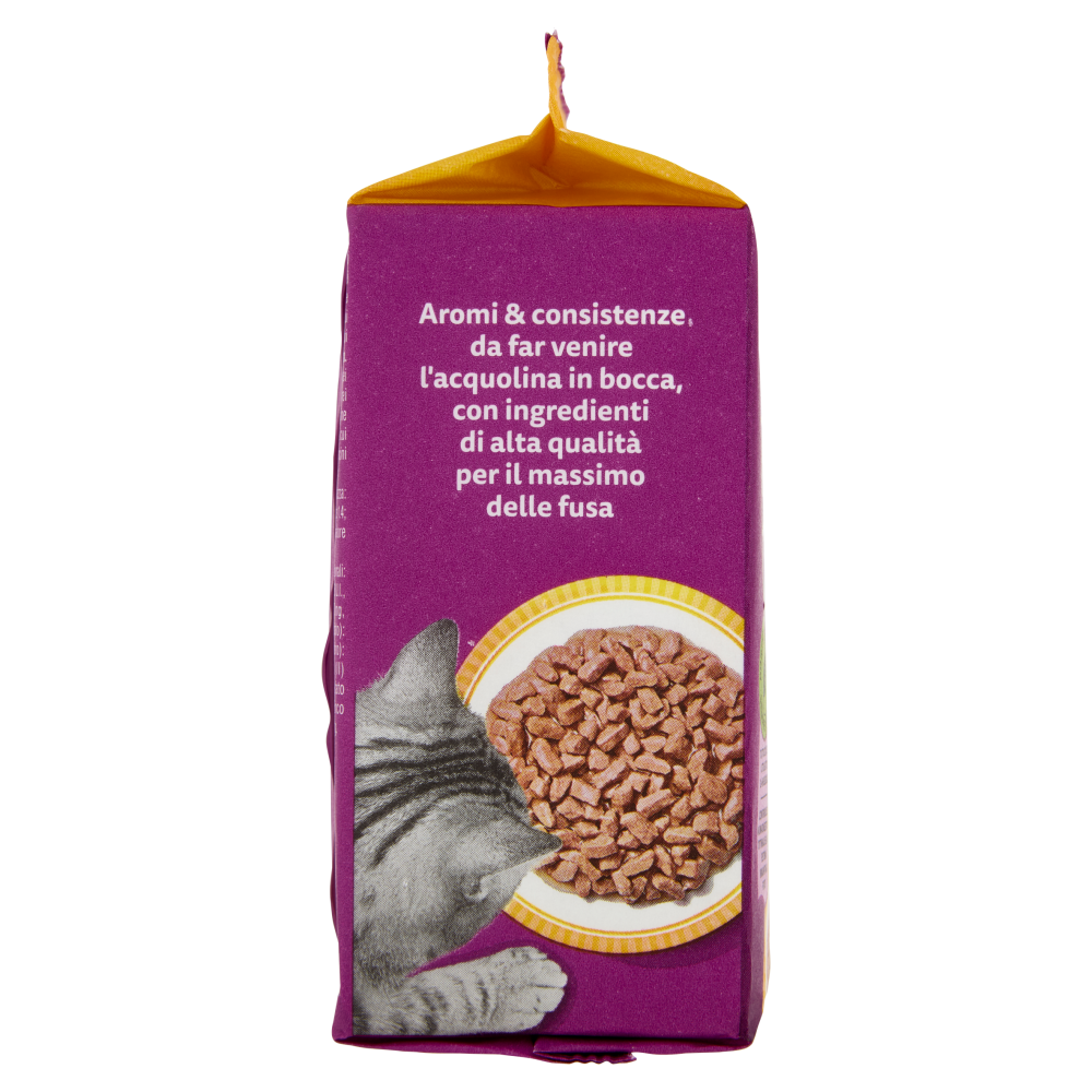 Contribuisce a una Digestione Ottimale Con fibre aggiunte per favorire la digestione Contribuisce a un Sistema Immunitario Forte Formulato con Vitamine C ed E per favorire le difese naturali Aiuta a mantenere Pelle & Pelo in salute Contiene zinco aggiunto, essenziale per pelle & pelo in salute Mantiene Muscoli Forti Con proteine di alta qualità per aiutare lo sviluppo di muscoli forti Aromi & consistenze, da far venire l'acquolina in bocca, con ingredienti di alta qualità per il massimo delle fusa