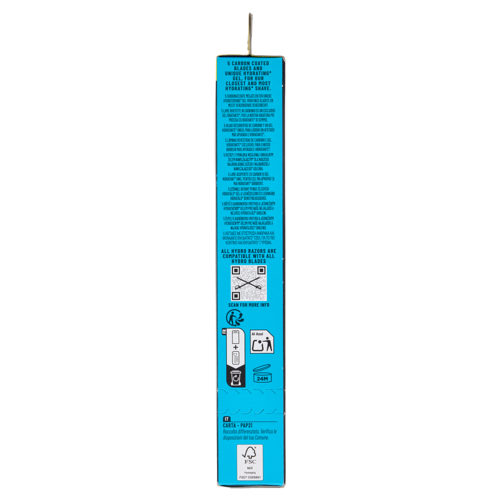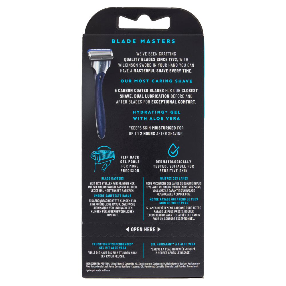 5 Lame rivestite in carbonio ed un esclusivo gel idratante, per la nostra rasatura più precisa ed idratante di sempre.