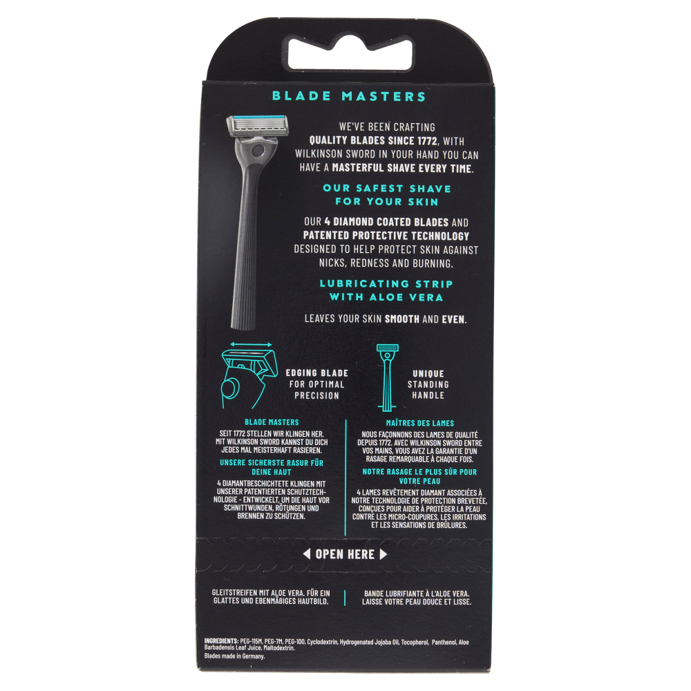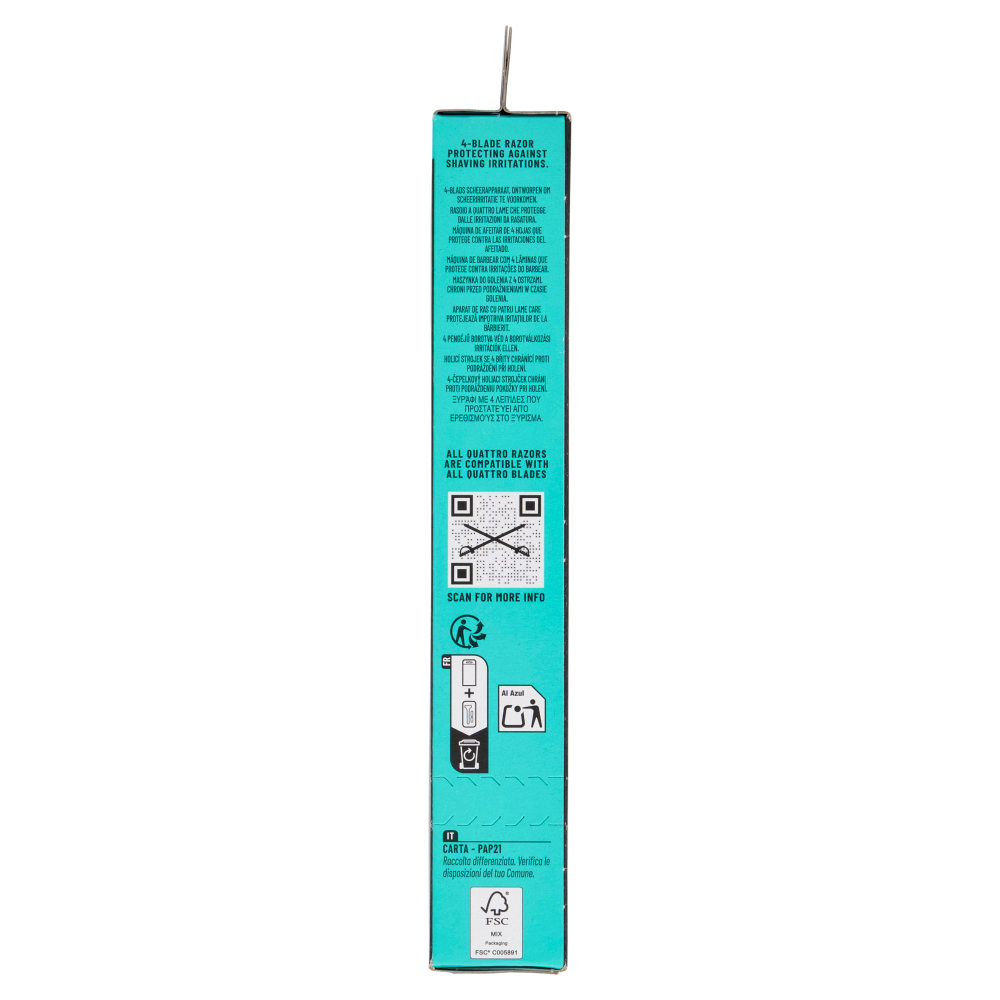 Rasoio a quattro lame che protegge dalle irritazioni da rasatura.