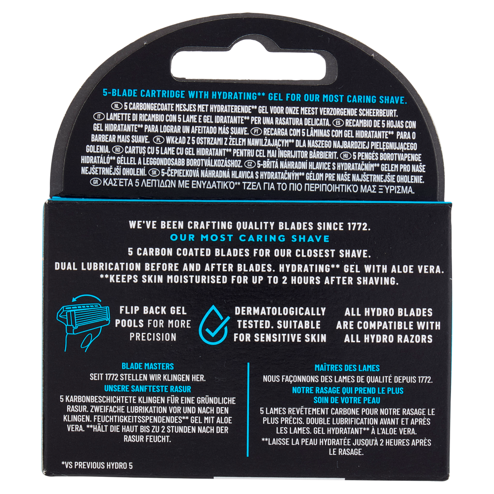 Lamette di ricambio con 5 lame e gel idratante per una rasatura delicata.