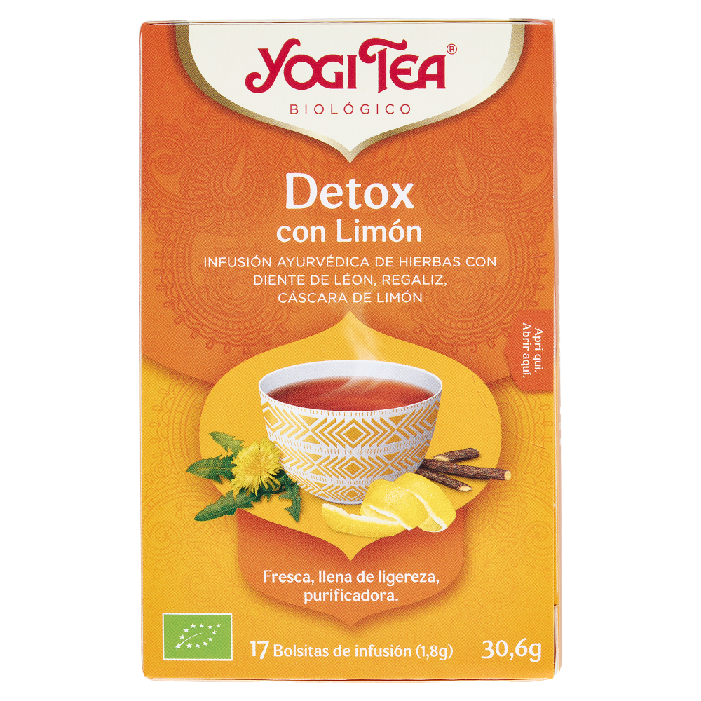 Yogi Tea Detox Con Limone Bio infuso ayurvedico di erbe con tarassaco liquirizia scorza limone 30,6g
