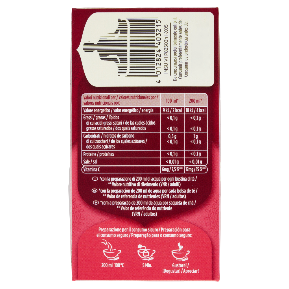 Preparazione per il consumo sicuro: 200 ml di acqua bollente - 5 minuti di infusione - Gustare!